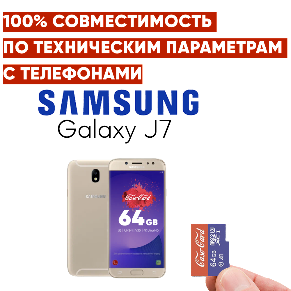 Карта памяти для SAMSUNG J7 / флешка подходит для телефона САМСУНГ j7 Galaxy (галакси) памяти 64 гб Case Card информация: