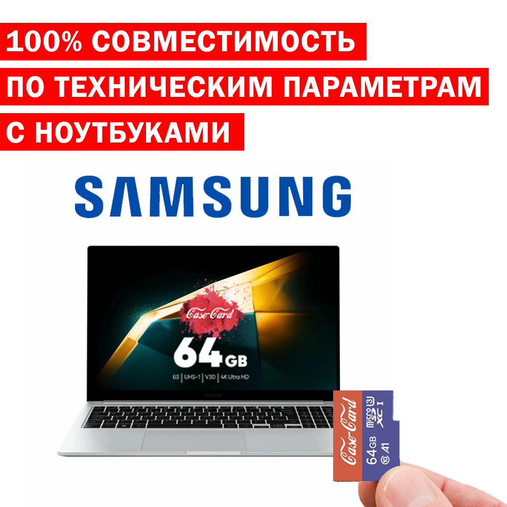 Карта памяти для ноутбука Samsung / флешка подходит для ноутбука Самсунг разъем 64 гб Case Card 10 U3 V30 Ultra HD информация: