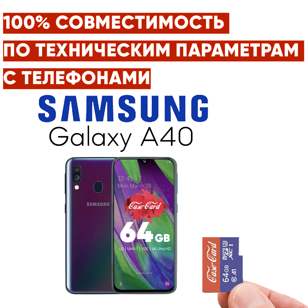 Карта памяти для SAMSUNG A40 / флешка подходит для телефона самсунг А40 Galaxy (галакси) памяти 64 гб Case Card Ultra HD информация: