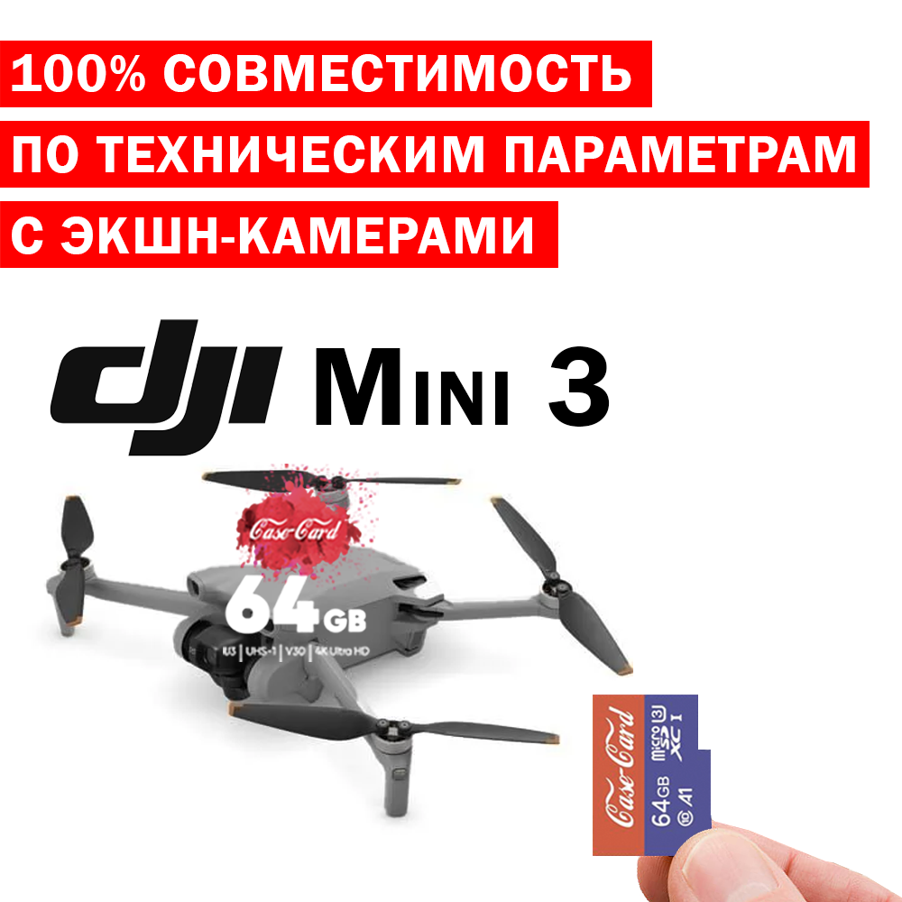 Карта памяти для экшн камеры DJI mini 3 / флешка Case Card для экшн камеры DJI mini 3 64 гб 10 U3 V30 Ultra HD информация: