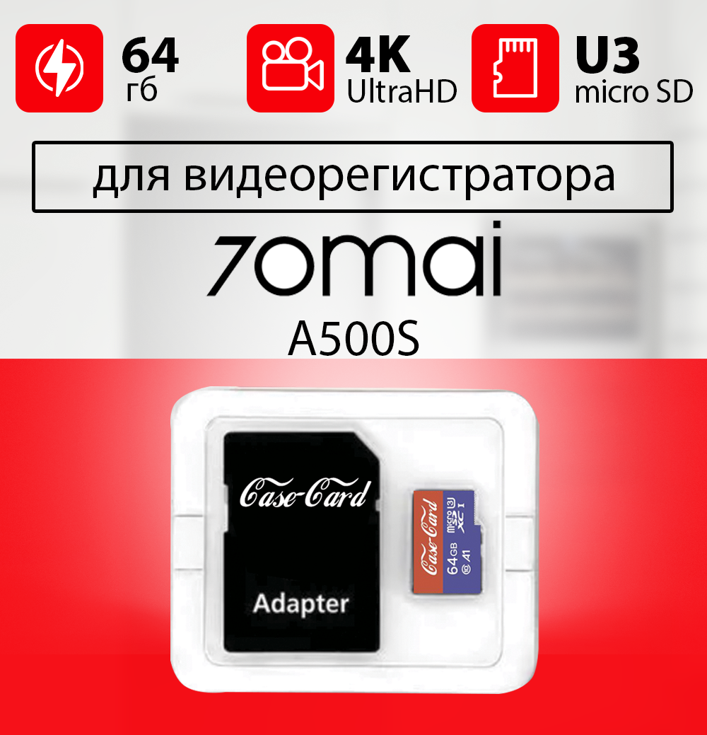 Карта памяти для видеорегистратора 70mai a500s / флешка подходит для 70mai a500s 64 гб Case Card 10 U3 V30 Ultra HD информация: