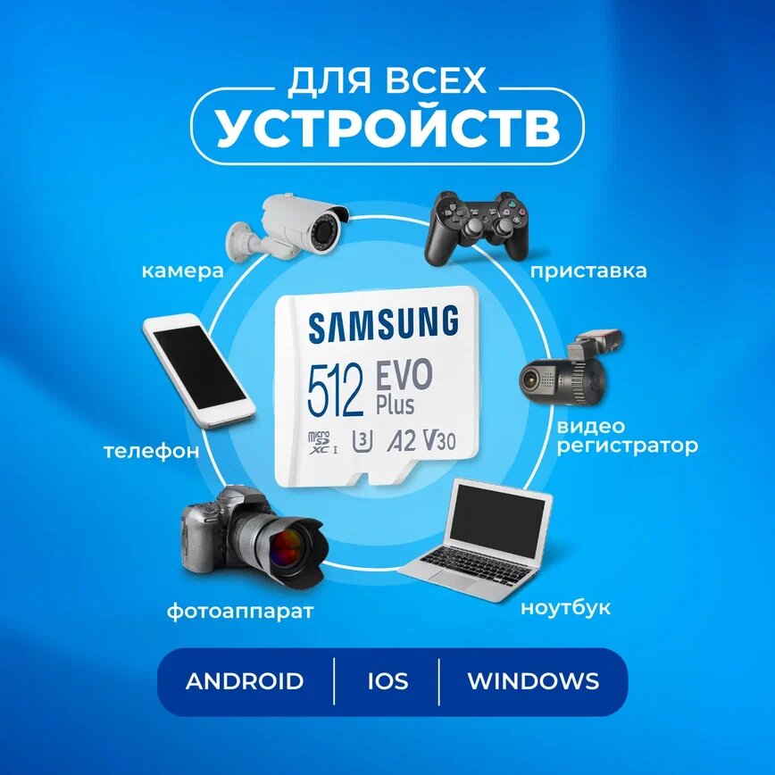Карта памяти Samsung MicroSD 512GB Class 10 с адаптером 160 мб/с информация:
