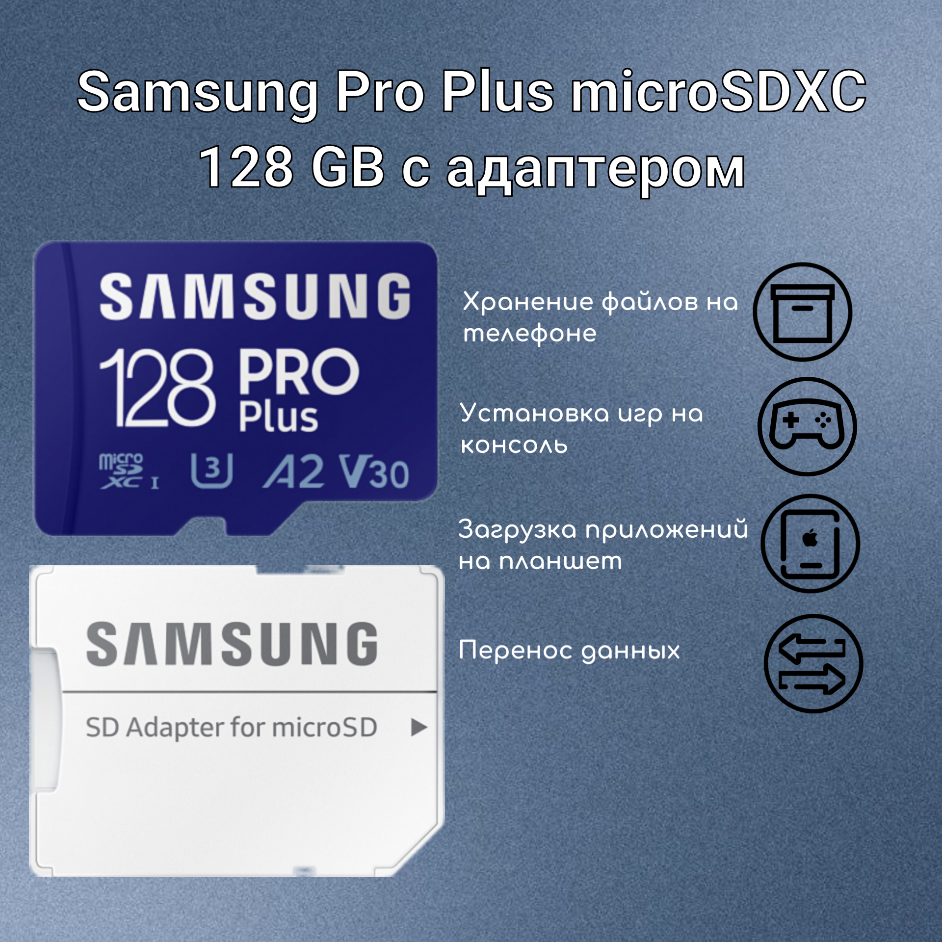 Карта памяти Samsung Pro Plus microSDXC 128GB Class 10, V30, A2, UHS-I U3, R 180 МБ/с, адаптер на SD информация: