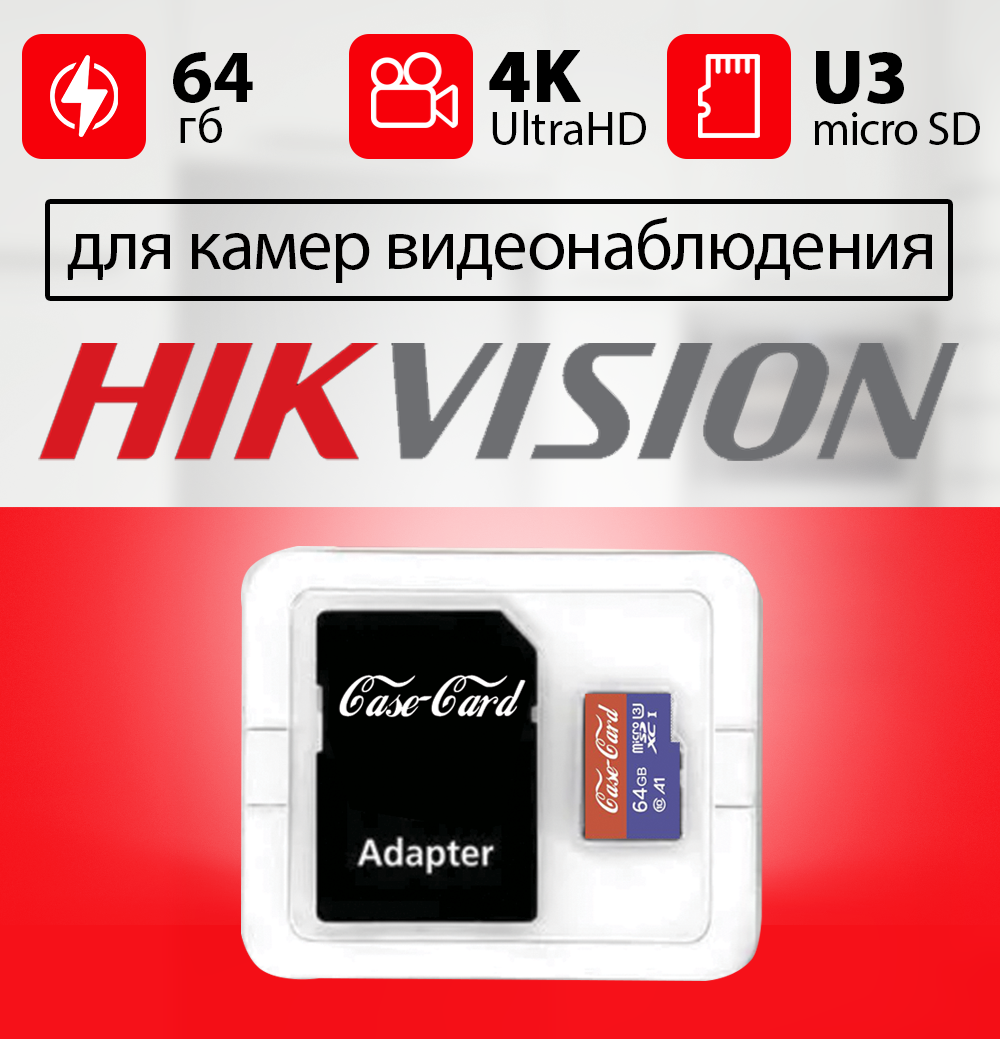 Карта памяти для видеокамеры Hikvision / флешка подходит для Hikvision 64 гб Case Card 10 U3 V30 Ultra HD информация: