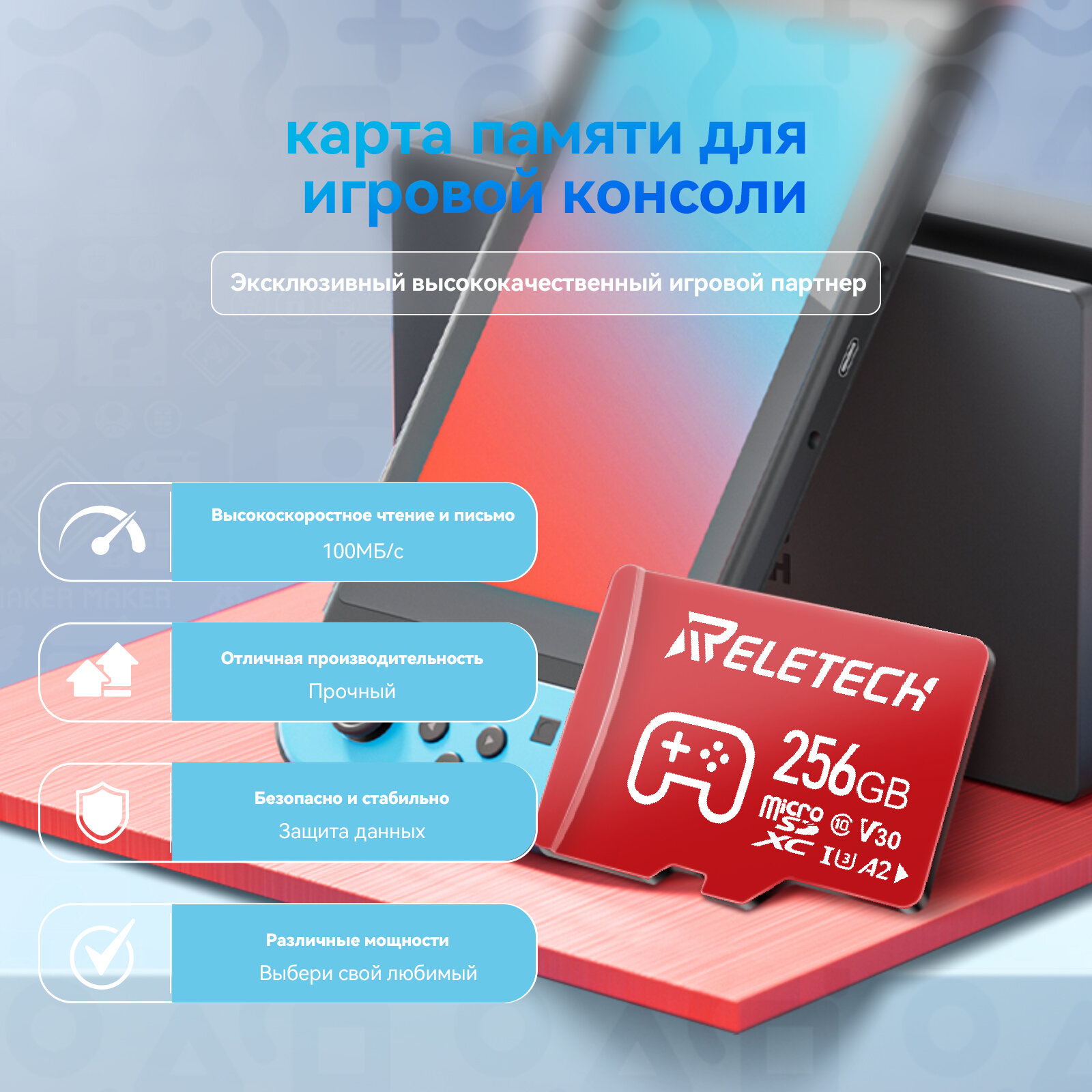 10 цен на Карта памяти Reletech micro SD A2 256ГБ Для nintendo switch steam deck, красный