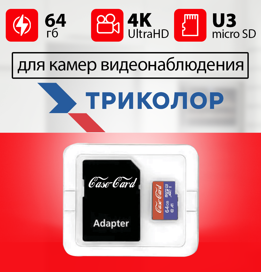Карта памяти для видеокамеры Триколор / флешка подходит для Триколор 64 гб Case Card 10 U3 V30 Ultra HD информация:
