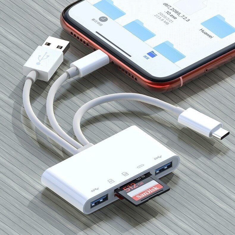 Картридер 5 в 1: USB, Type-C, Lightning, SD/TF/OTG, для iPhone, Android, ноутбука и ПК, универсальный кардридер информация: