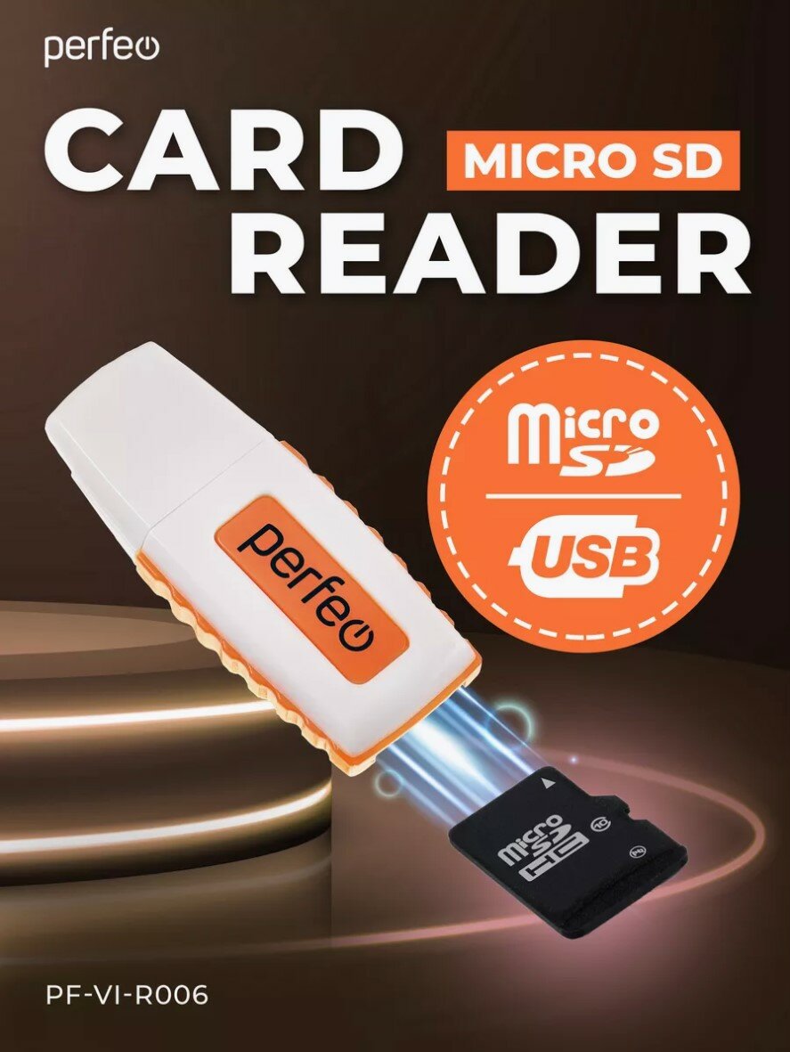 10 цен на Кардридер SD карт Perfeo, USB 2.0 адаптер, оранжевый