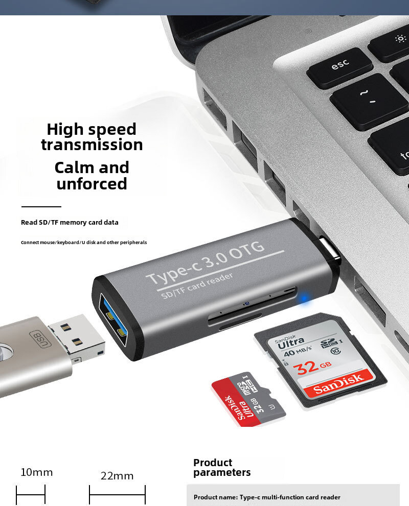 Многофункциональный кард-ридер USB3.1 с двумя слотами для карт, универсальный для мобильных телефонов и компьютеров