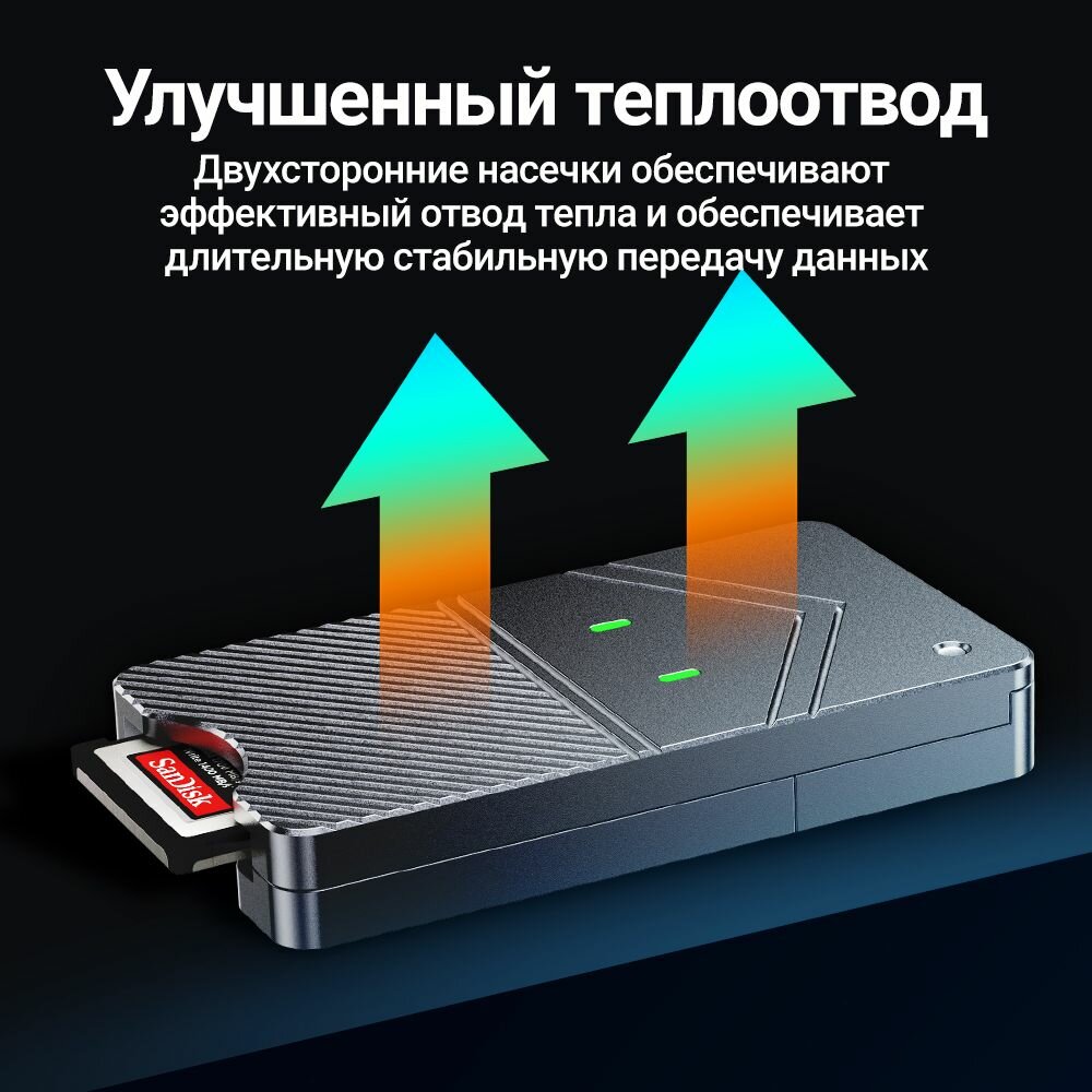 JEYI CFexpress Card Reader, USB 3.2 Gen2 10Gbps CFE Type B Reader, Адаптер для карт памяти в алюминиевом корпусе для Windows/MacOS/Android информация: