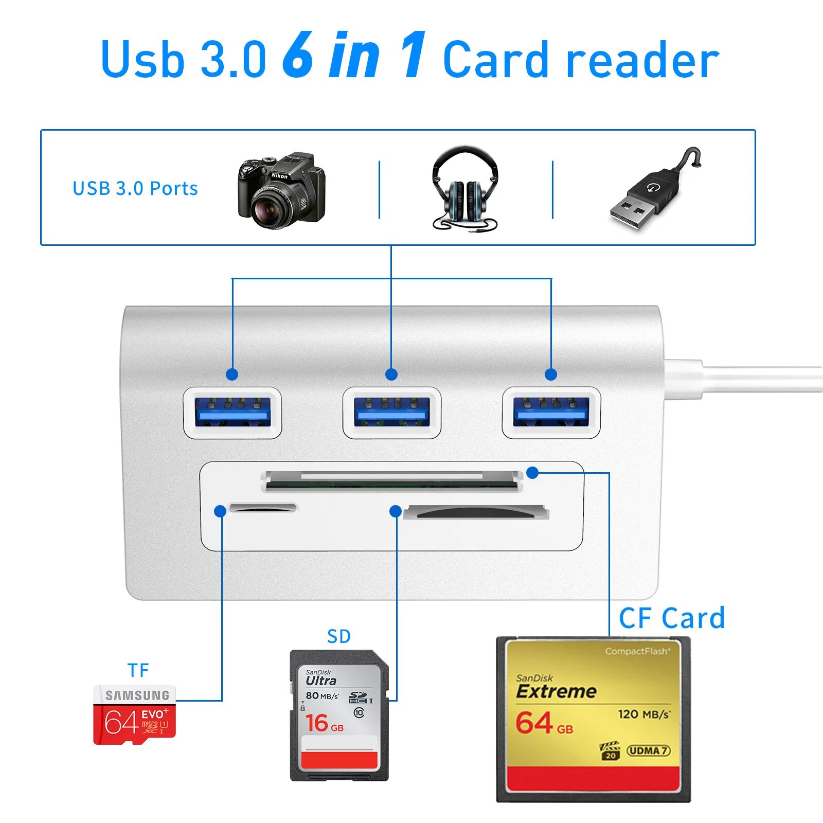 10 цен на Кардридер IRhasta 3 порта USB 3.0, USB HUB Card reader