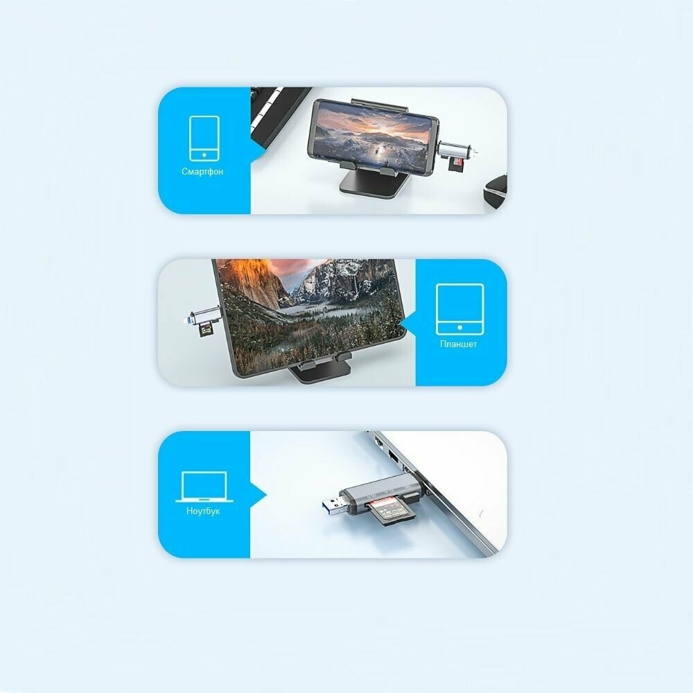 Картридер Type-C, Lightning, USB, SD, microSD, универсальный картридер для IPhone, Android информация:
