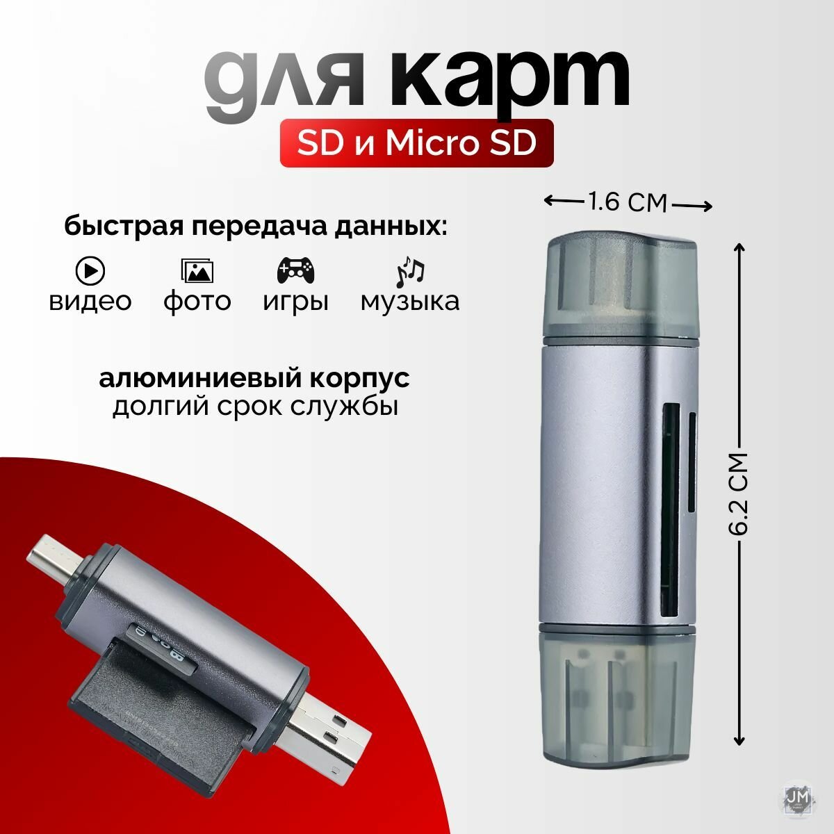 Картридер micro SD USB Type-C Best Seller переходник для карт памяти Micro SD / SD для компьютера, ноутбука информация: