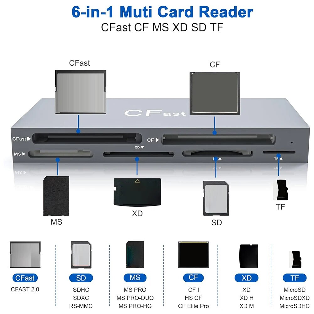 10 цен на Кардридер ALLOYSEED 6 карт CFast USB C, silver