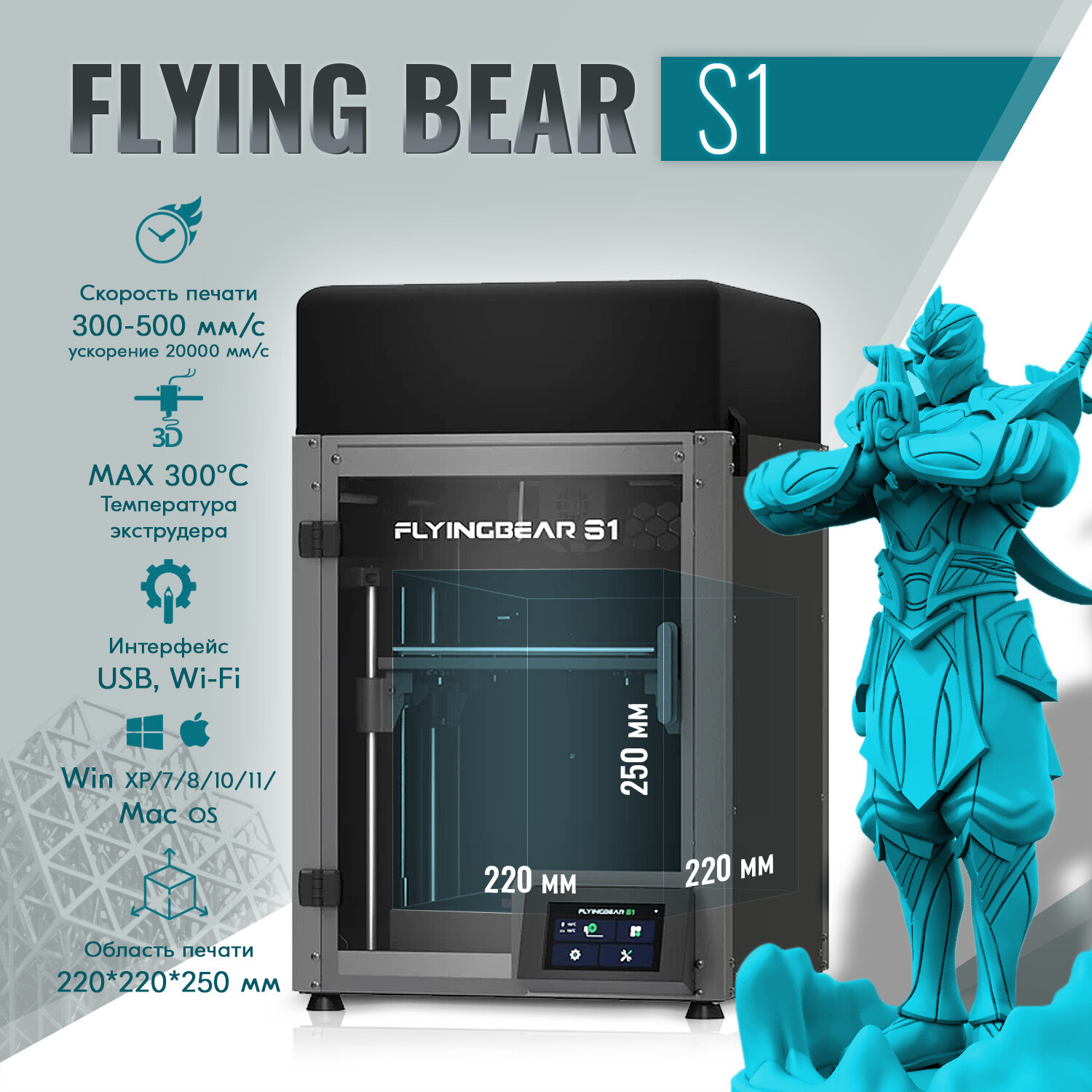 Отзывы на 3D-принтер Flying Bear S1, FDM/FFF/PJP, ABS/PLA/PETG/SILK/TPU, 3D, чёрный
