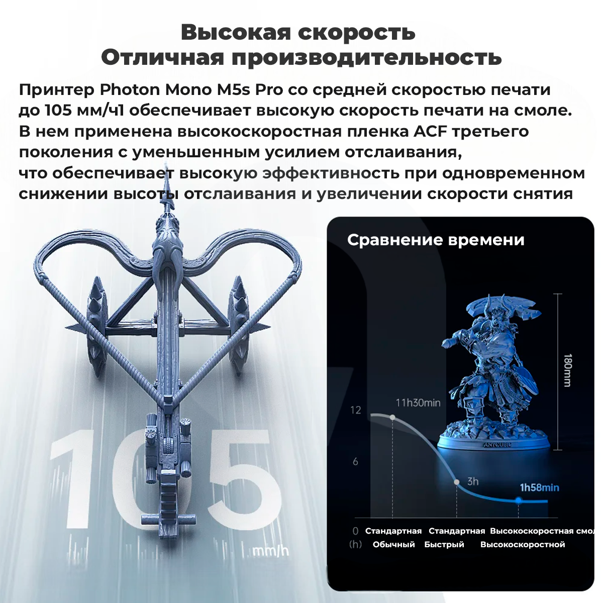 3д принтер ANYCUBIC Photon Mono M5s Pro, 224x126x200, SLS, ЖК-дисплей, 300 мм/сек скорость печати информация: