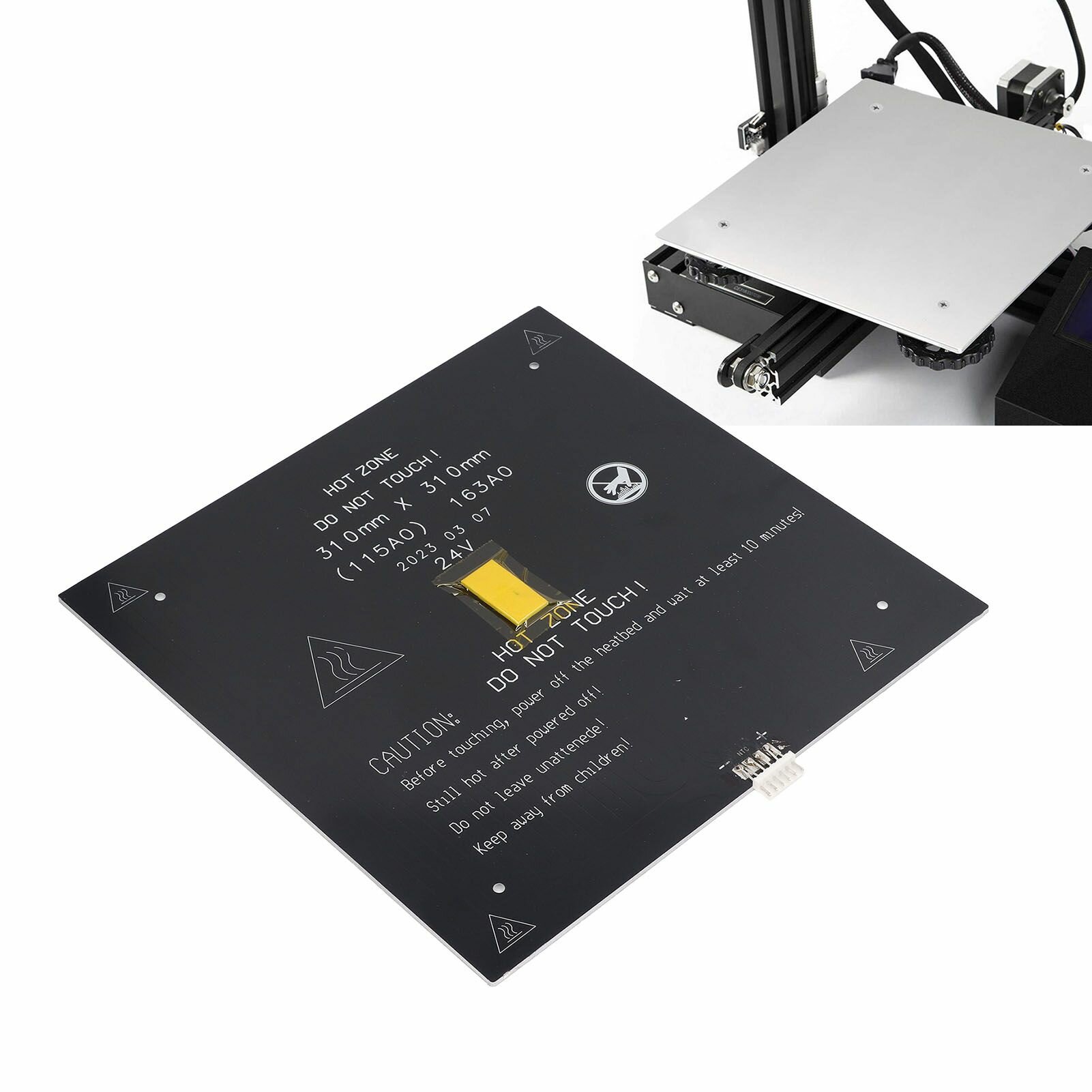 3D принтер, Горячий стол 2.4 310x310x3mm, Быстрый нагрев, Алюминиевая подогреваемая платформа с кабелем 90 см информация: