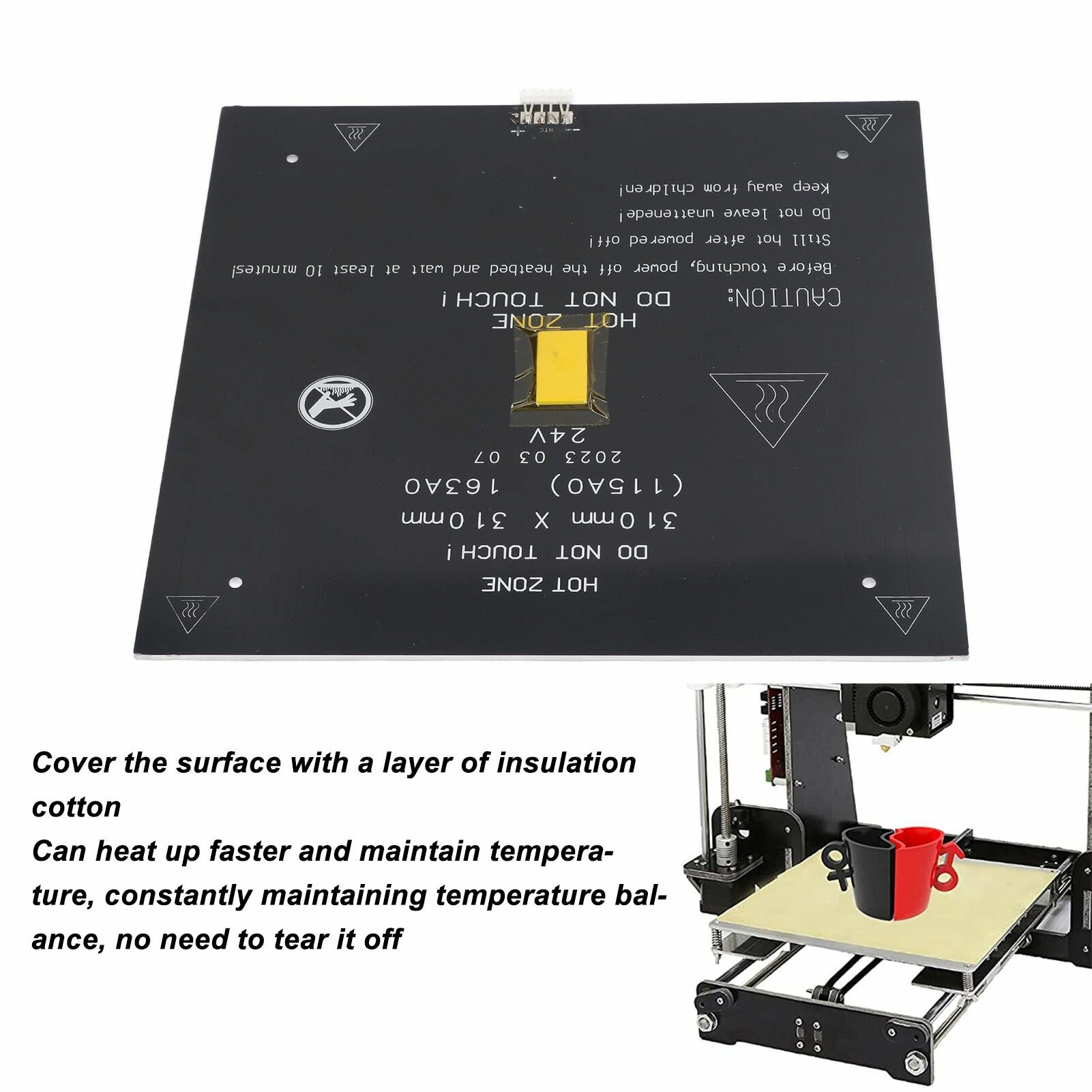 Отзывы на 3D принтер, Горячий стол 2.4 310x310x3mm, Быстрый нагрев, Алюминиевая подогреваемая платформа с кабелем 90 см