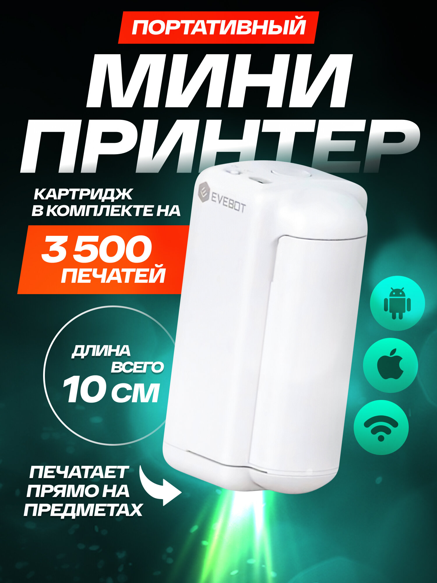 10 цен на Портативный мини-принтер EVEBOT PrintPod, термопечать, цвет белый