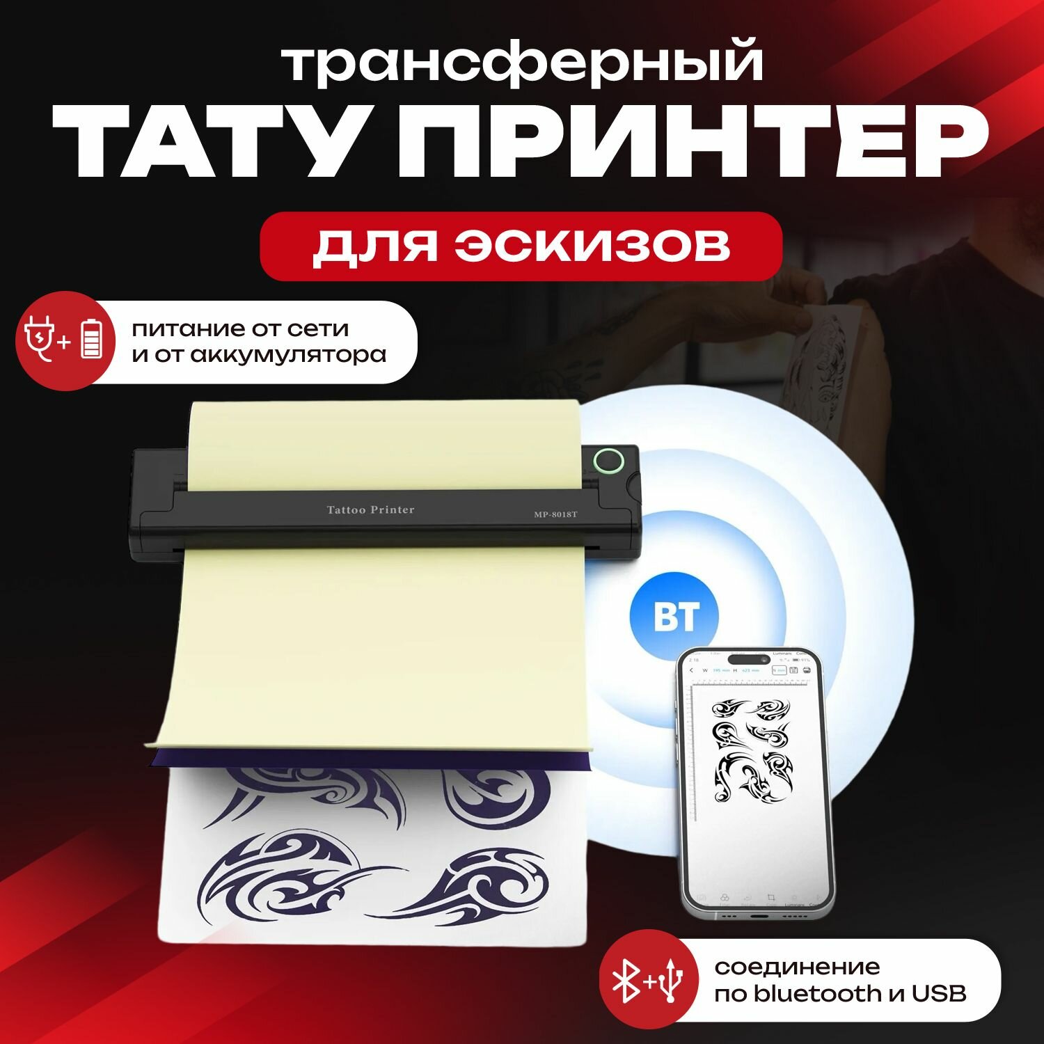Тату-принтер беспроводной Татушоп, A4, термотрансфер, чёрный информация: