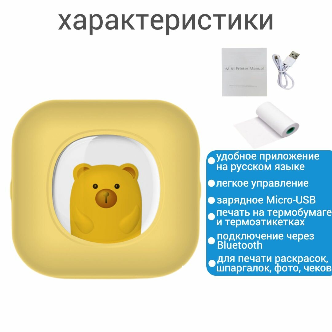Компактный мини принтер для телефона с бумагой для печати/беспроводной портативный термопринтер, желтый информация: