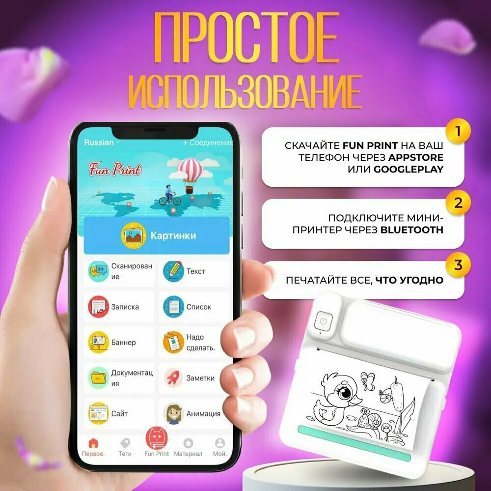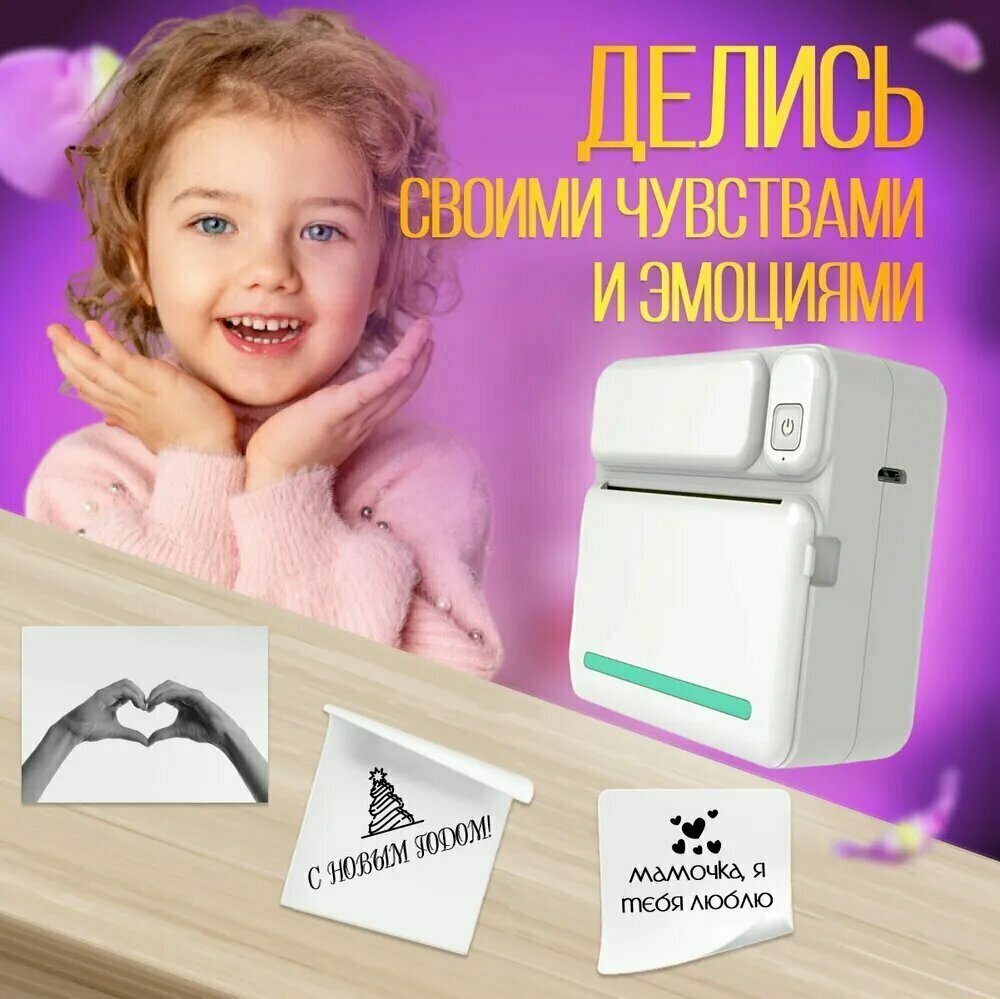 Портативный мини принтер для картинок, этикеток, карманный беспроводной минипринтер для фото; термопринтер