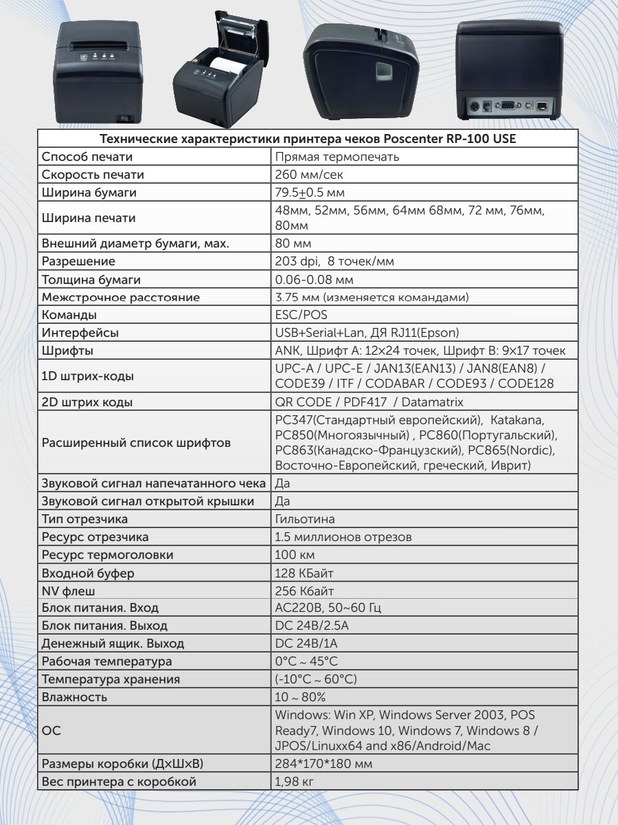 Отзывы на Принтер чеков POScenter RP-100 USE 80мм, 260 мм/сек, автоотрез, RS232+USB+LAN черный