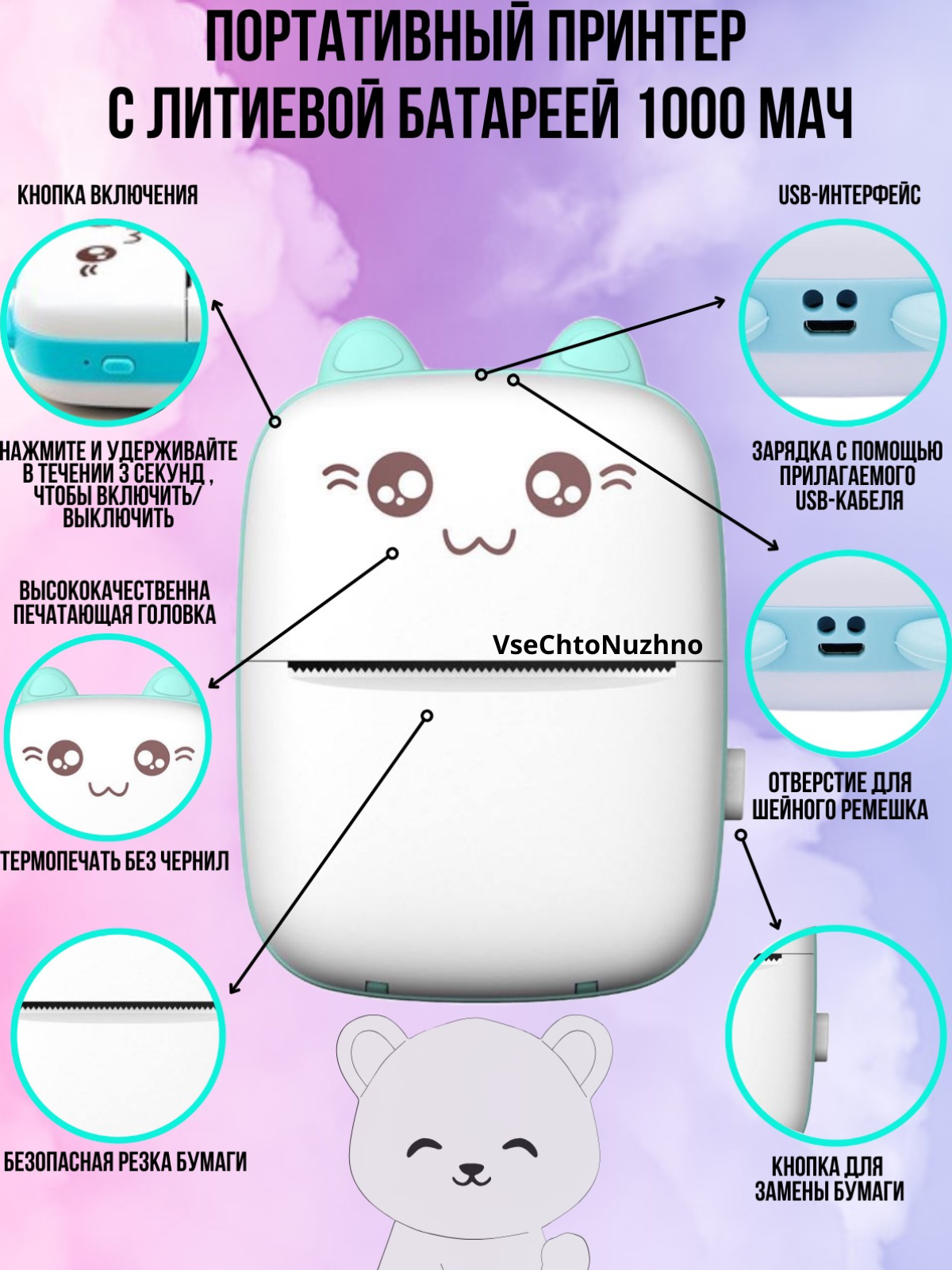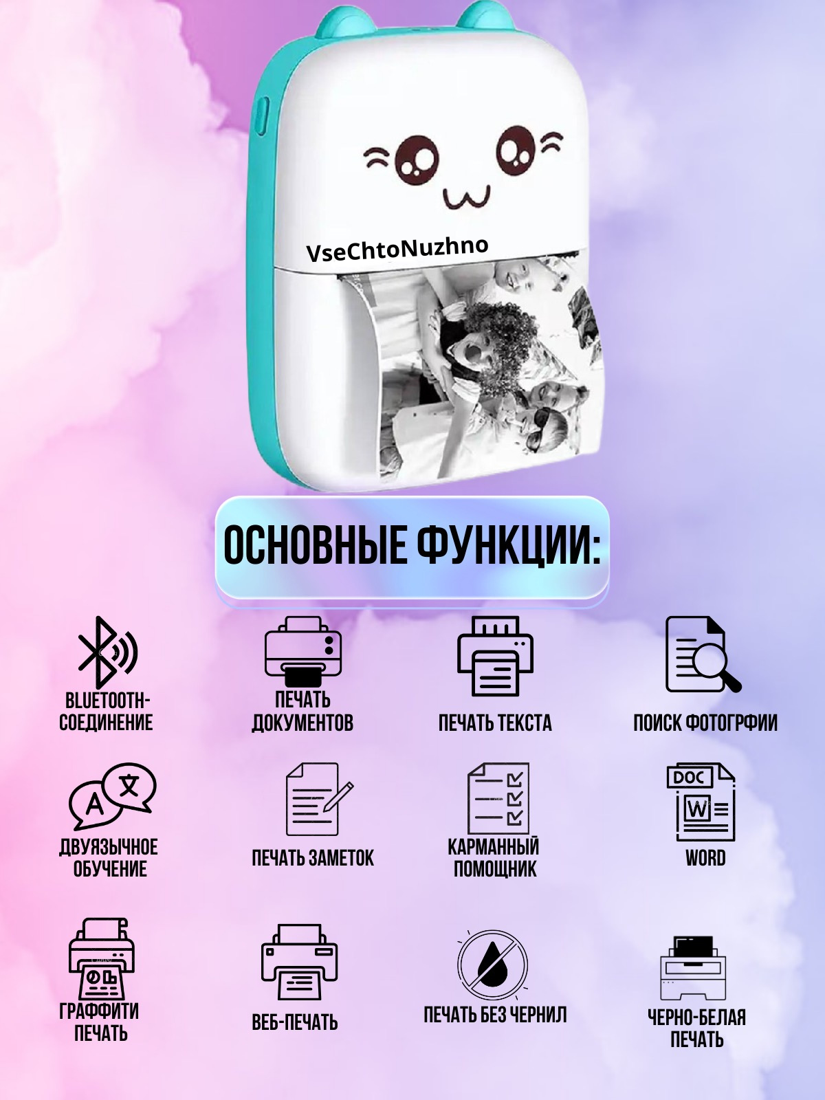 Отзывы на Беспроводной детский портативный мини-термопринтер для телефона, голубой