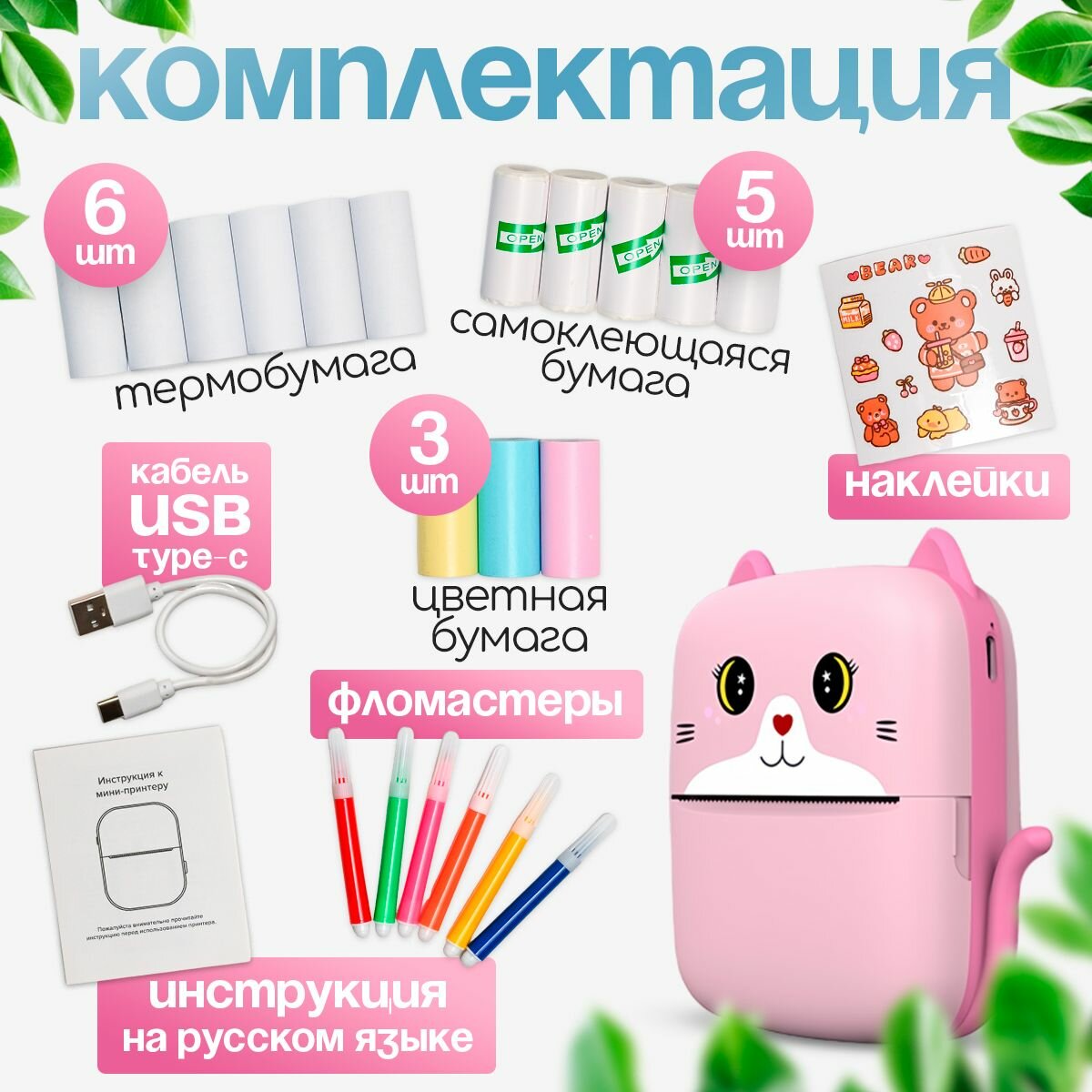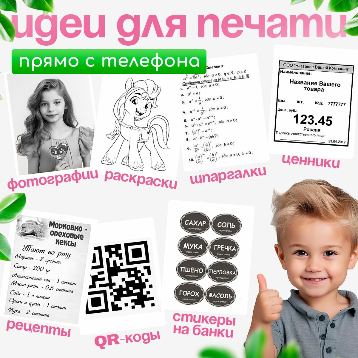 Беспроводной портативный мини принтер для моментальной печати фото и наклеек с телефона по блютуз информация: