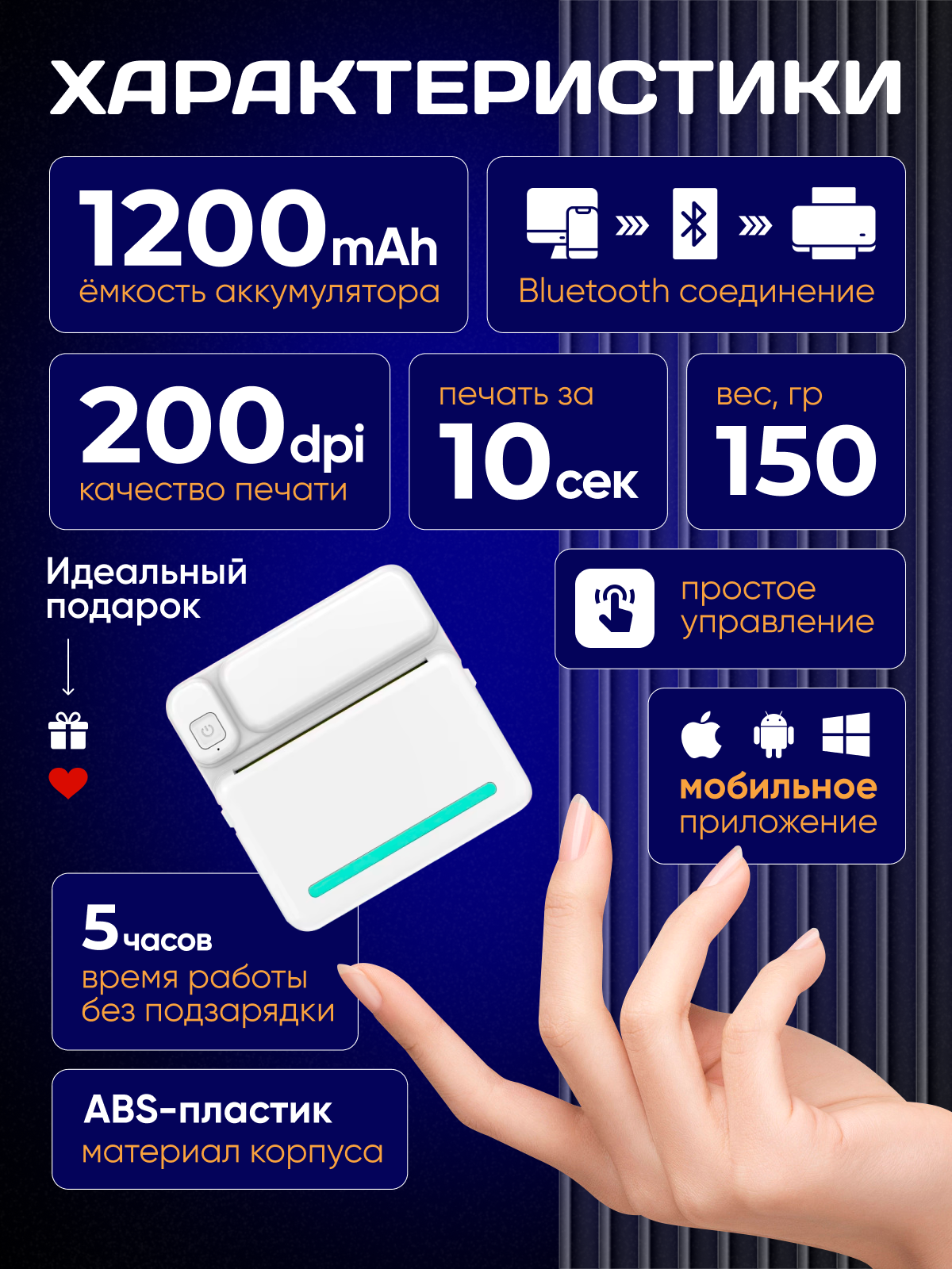 Мини принтер, Портативный термопринтер, фотопринтер для мобильный телефон (максимальная комплектация) информация: