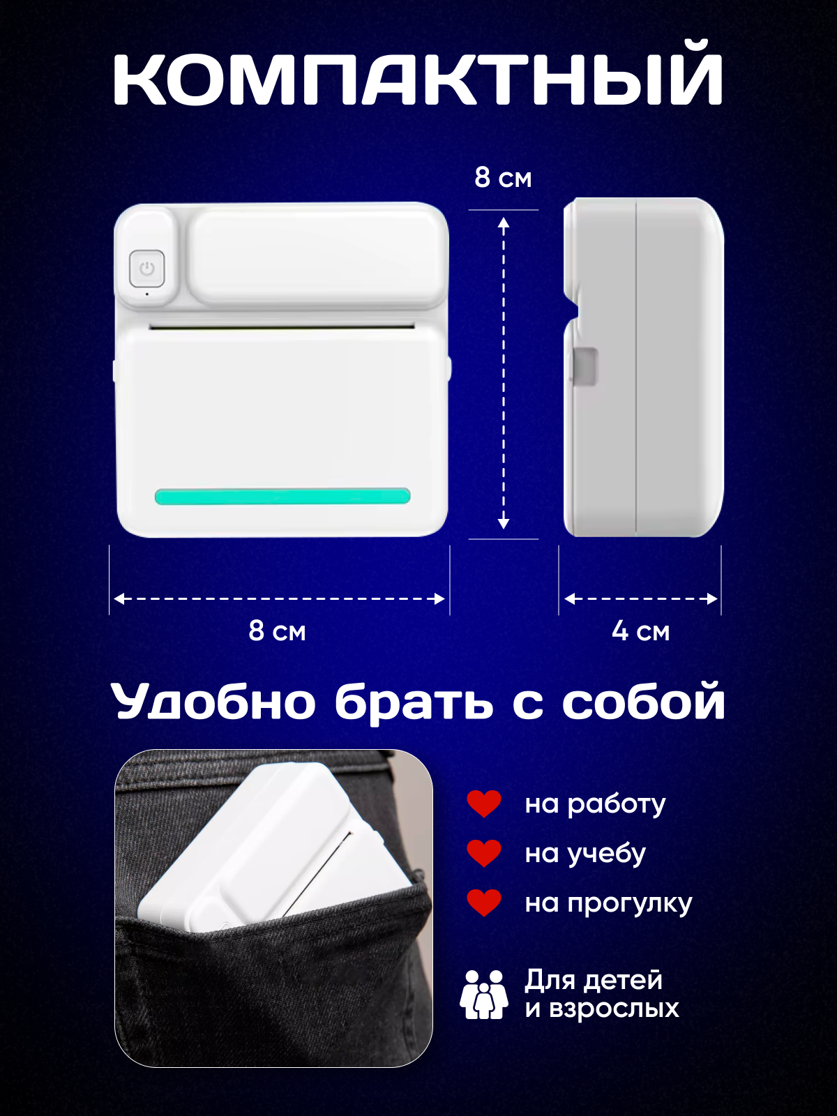 10 цен на Мини принтер, Портативный термопринтер, фотопринтер для мобильный телефон (максимальная комплектация)