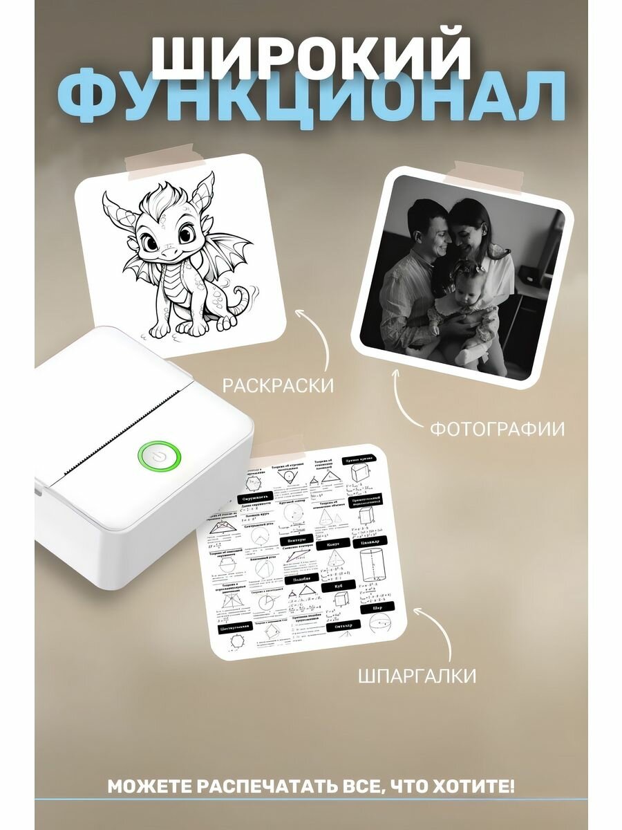 Отзывы на Портативный мини-принтер для телефона с Bluetooth, термопечать, черно-белый