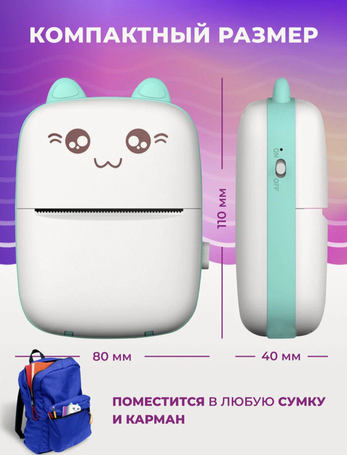 Портативный мини принтер для печати, маленький принтер для детей и взрослых, голубой информация:
