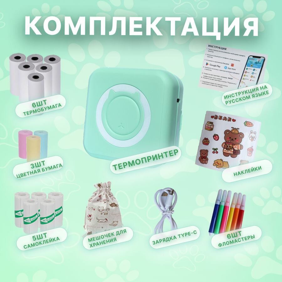 Мини-принтер, беспроводное подключение, черно-белая печать, для телефона, зеленый информация: