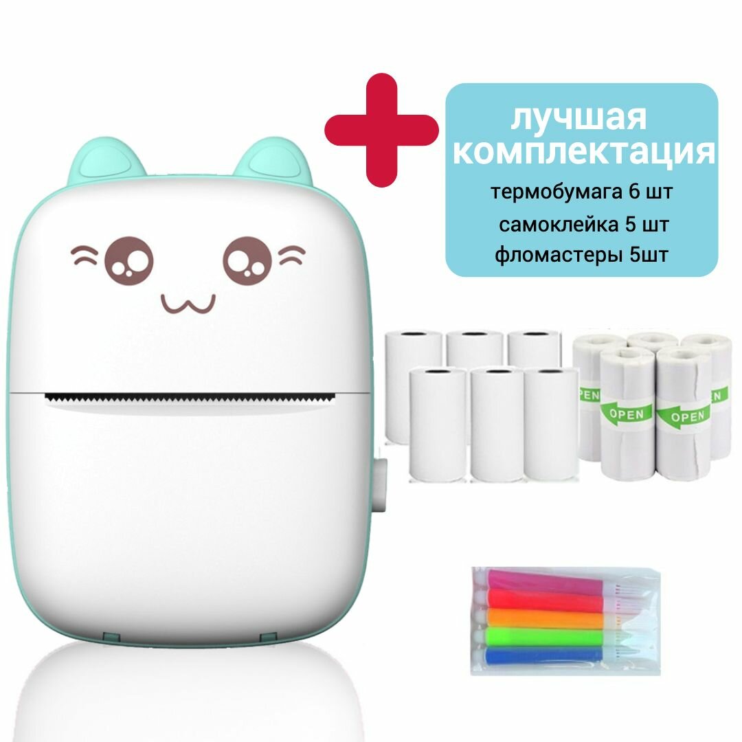 Компактный мини принтер для телефона с набором бумаги и фломастерами/беспроводной портативный термопринтер, синий информация: