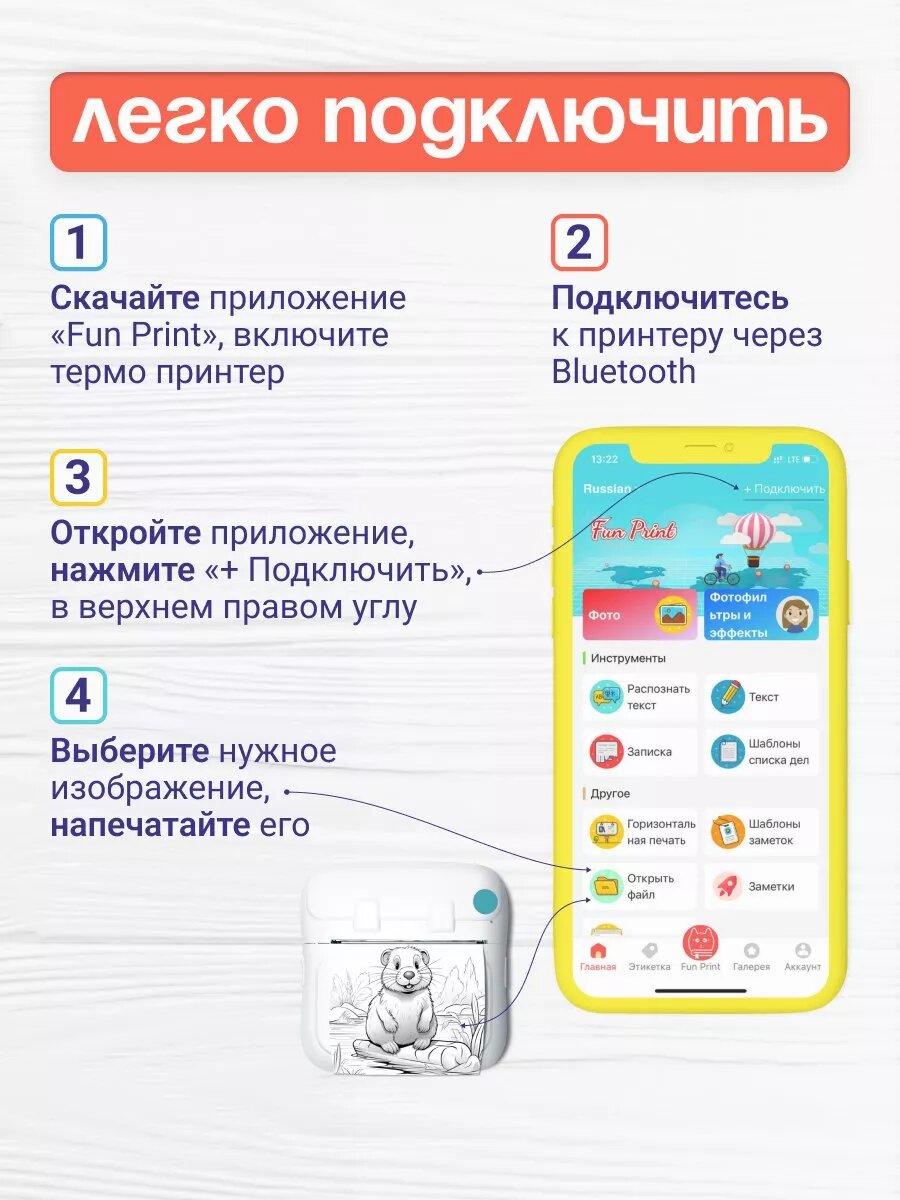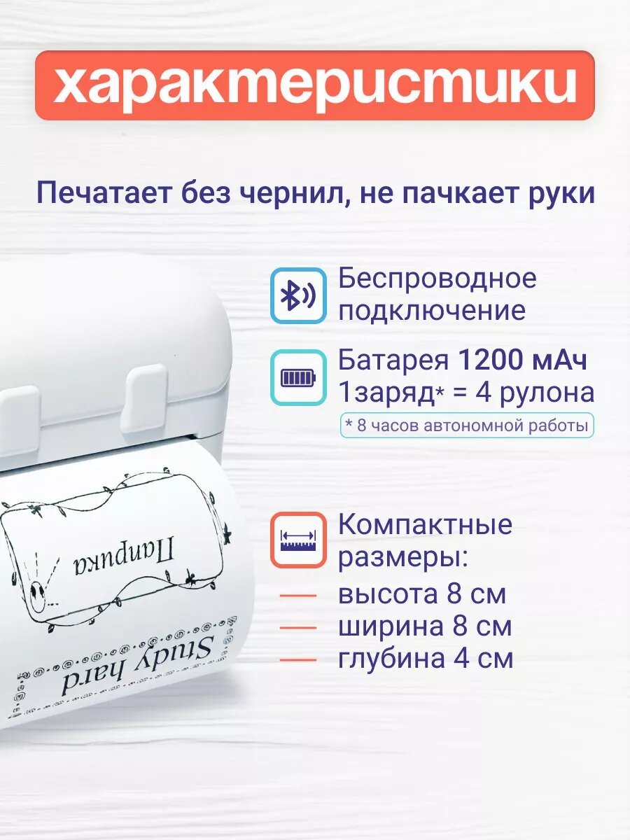 Мини-принтер, термопринтер, портативный принтер, Bluetooth принтер. информация: