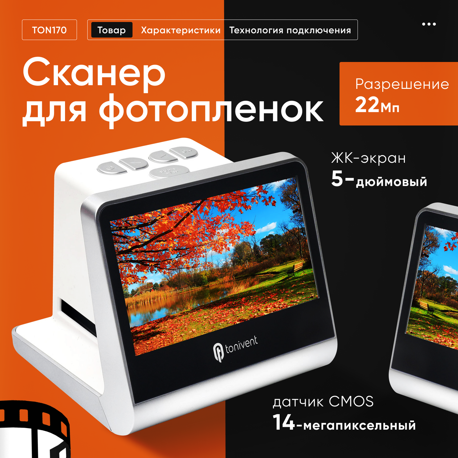 Сканер для фотопленок TON170, 22 Мп информация: