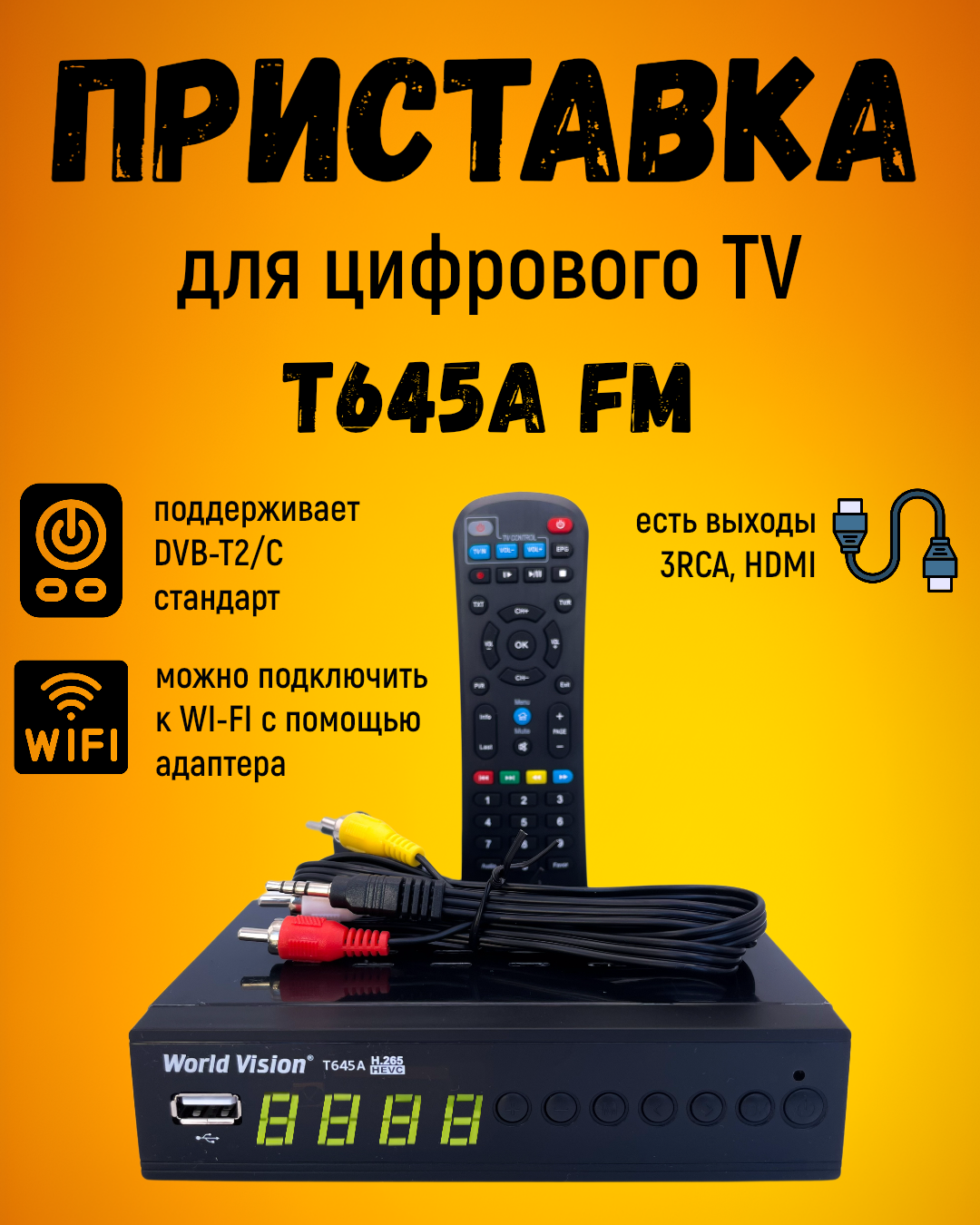 Приемник кабельно-эфирный цифровой TB DVB-T2 WORLD VISION T645A (H.265) (пластик, с дисплеем) информация: