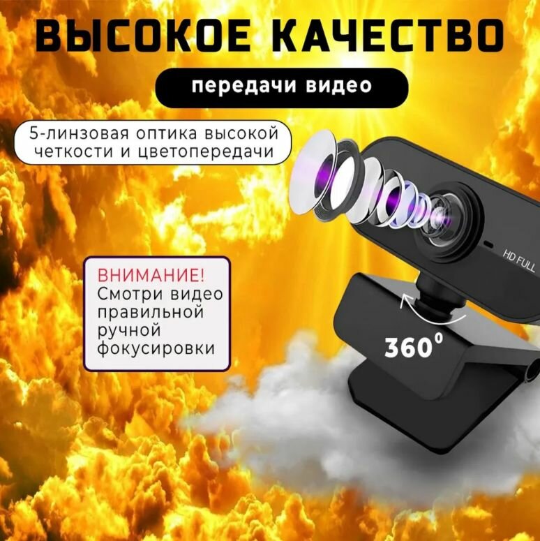 Веб камера нового поколения с микрофоном 30 fps; камера для компьютера и ноутбука; 1920х1080p FULL HD; USB информация: