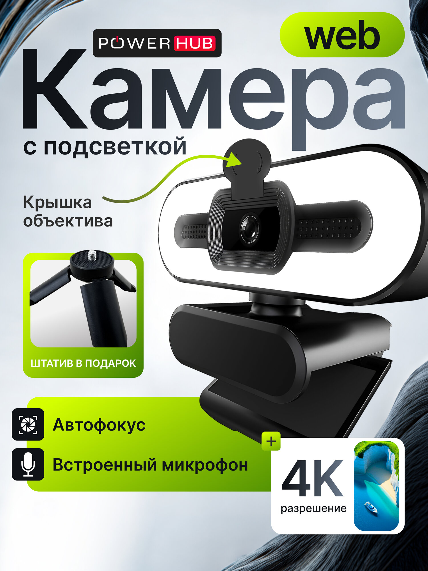 10 цен на Web-камера 4К чёрная с встроенным микрофоном, шторкой и подсветкой
