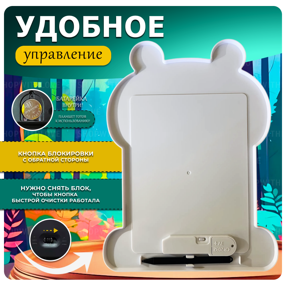 Детский графический планшет для рисования "Мишка", LCD экран, со стилусом 520 ₽