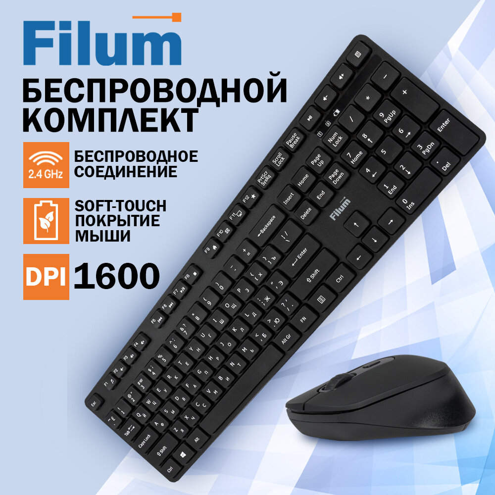 10 цен на Комплект клавиатура и мышь Filum Wireless FL-KTW15-BK, беспроводная, русская раскладка, мембранная, черный
