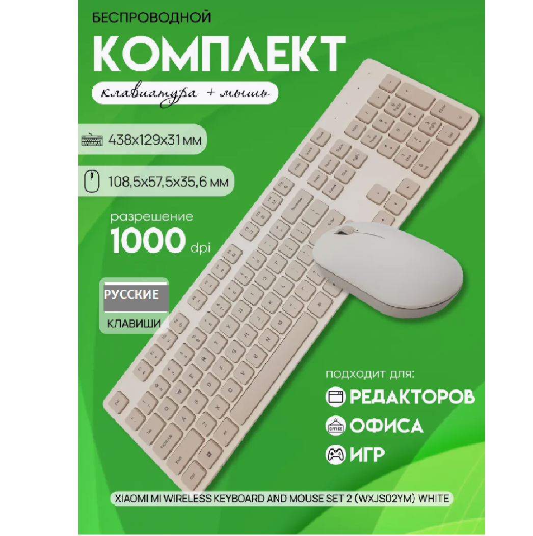 Комплект беспроводных клавиатуры и мышки Mi Wireless Keyboard and Mouse Set 2 (WXJS02YM) с Русской гравировкой White информация:
