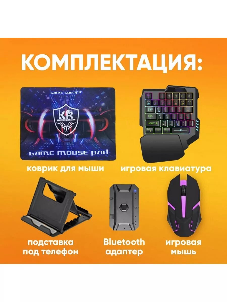 Игровой набор для телефона 5 в 1 YELANDAR K180 / Клавиатура + Мышка + Коврик + Конвертер для смартфона + Подставка 2 850 ₽