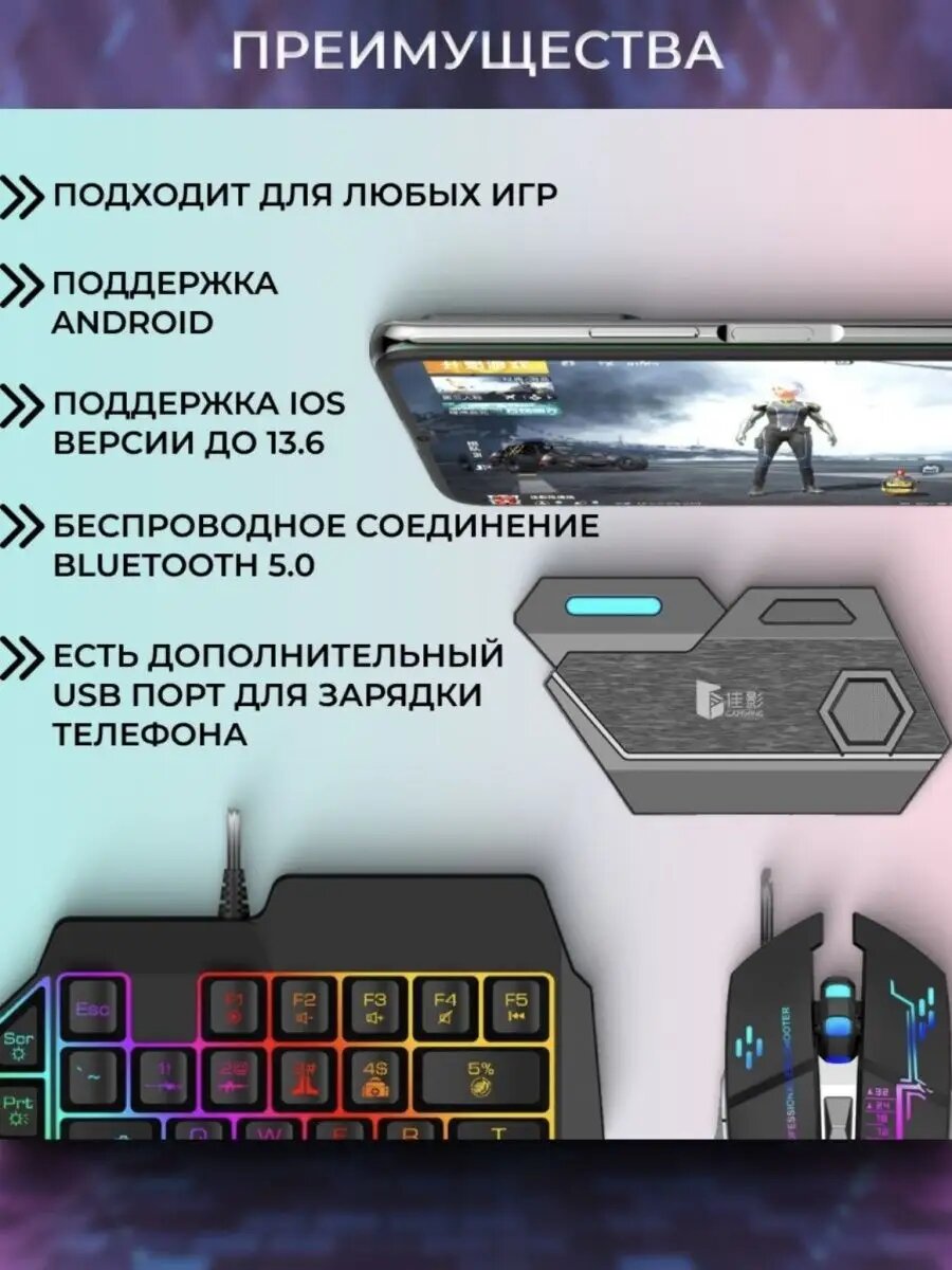 Игровой комплект клавиатура и мышь для телефона информация: