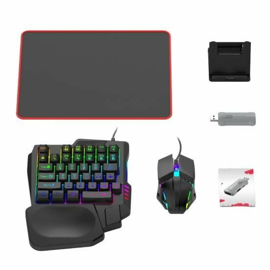 Игровой комплект для смартфона и ПК / Игровой конвертер, проводная клавиатура с RGB-подсветкой, подставка для запястья информация: