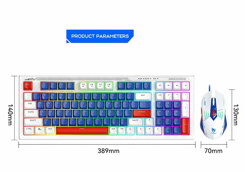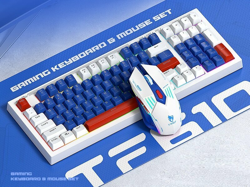 Комплект T-Wolf TF610 RGB Gaming Keyboard Mouse Combo ( сине - белый )с русской клавиатурой информация: