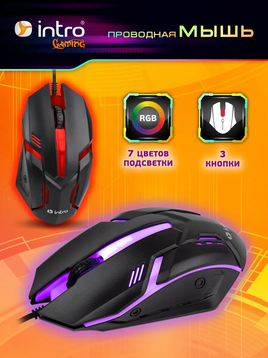 Игровой набор Intro KG890 комплект игровая клавиатура + мышь, проводной, черный информация: