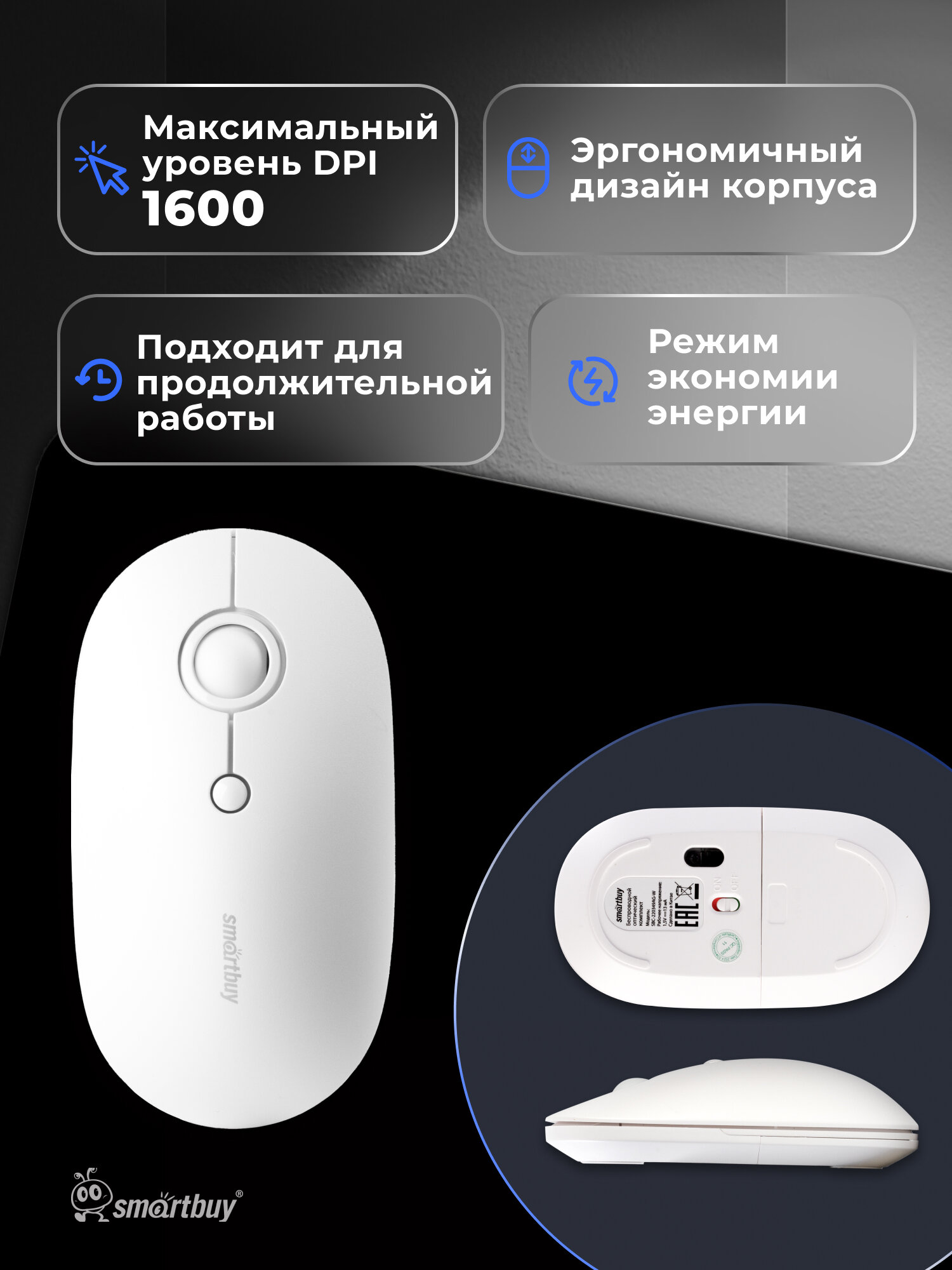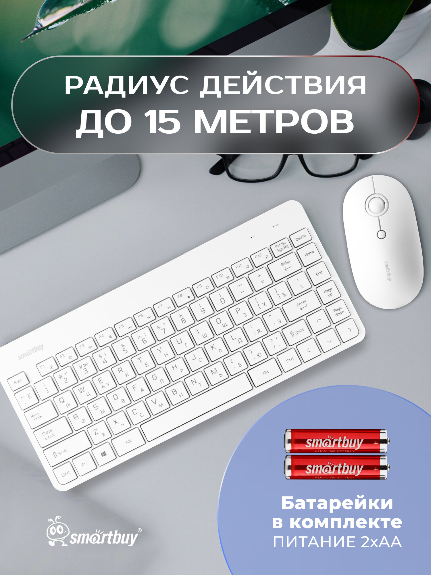 Мышь и клавиатура беспроводной комплект Smartbuy 220349AG, белый информация: