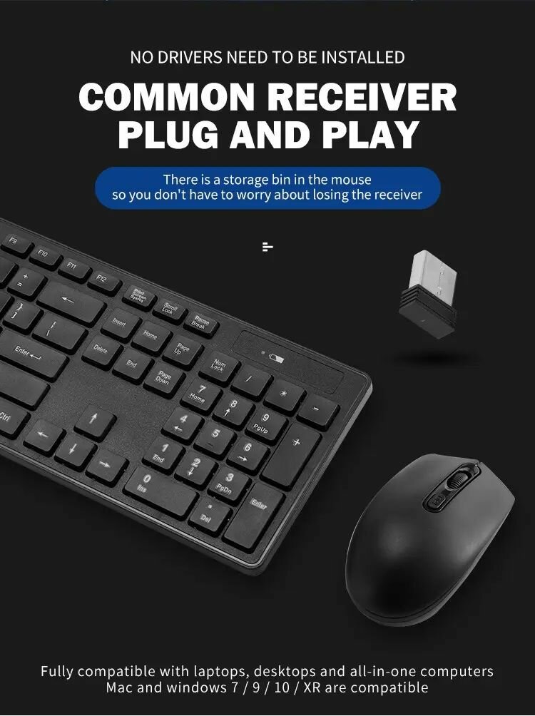 Комплект Клавиатура для компьютера с мышкой мультимедийный,1000 DPI, черный
